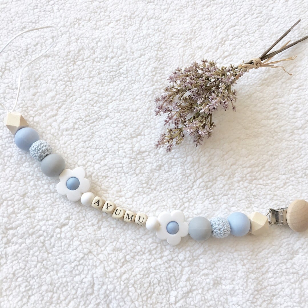 《フラワー名入れティーシングホルダー・おしゃぶりホルダー》