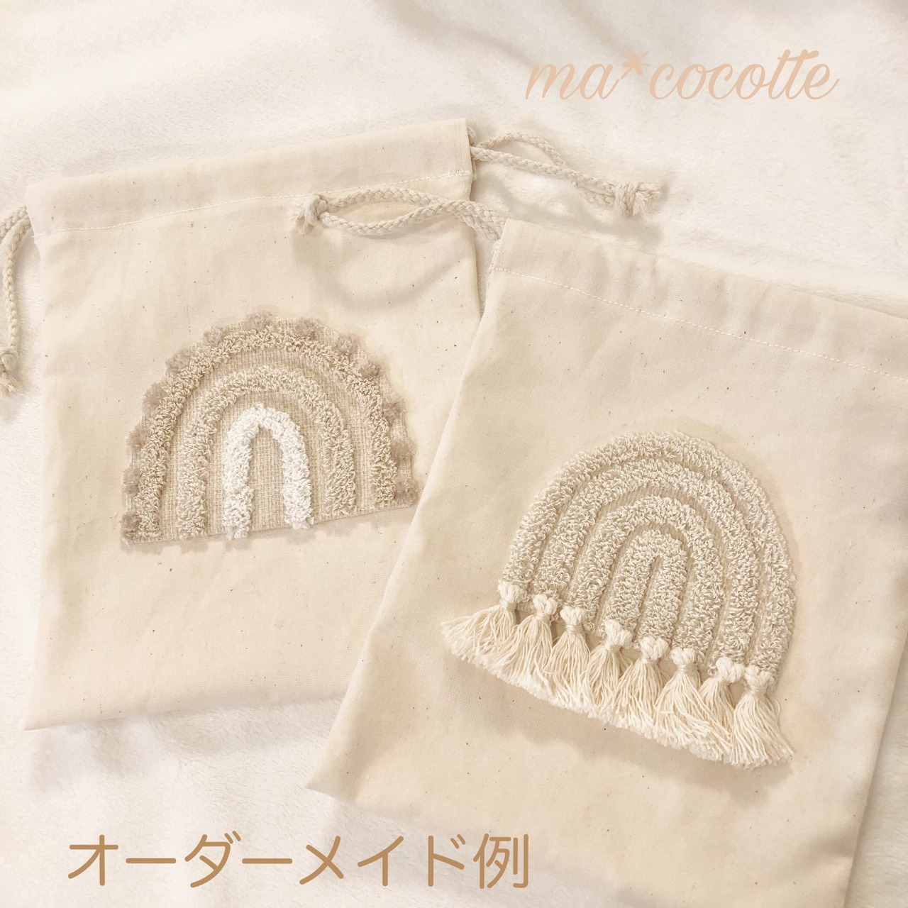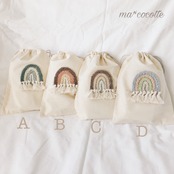 【再入荷】ma*cocotteオリジナル・フリンジレインボー巾着袋・歯固めポーチ おもちゃ収納