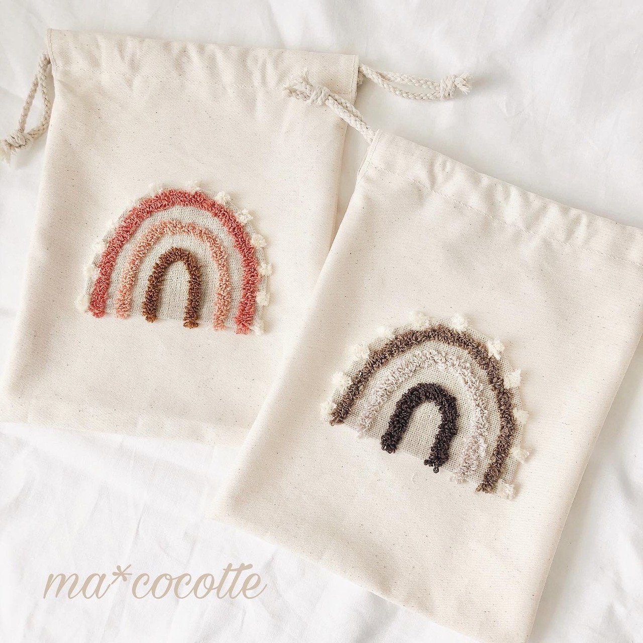 ma*cocotteオリジナル・ドットレインボー巾着袋 歯固めポーチ おもちゃ収納