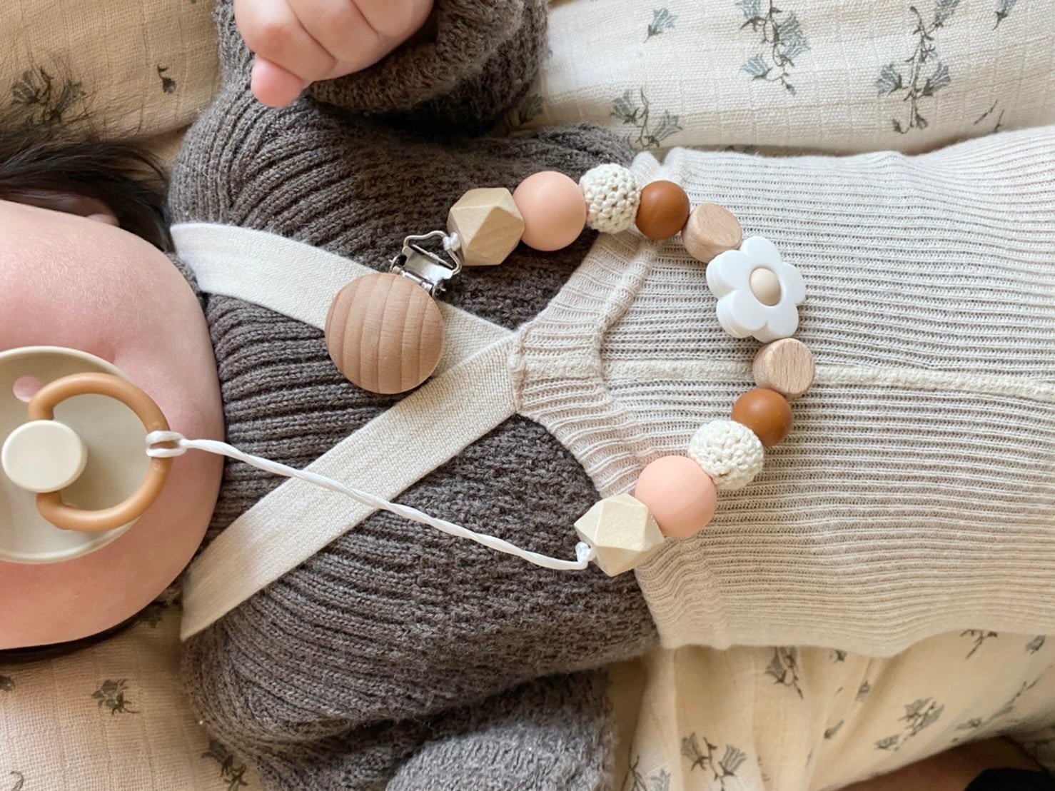 ■ お花の歯固めおしゃぶりホルダー(ピーチブラウン)