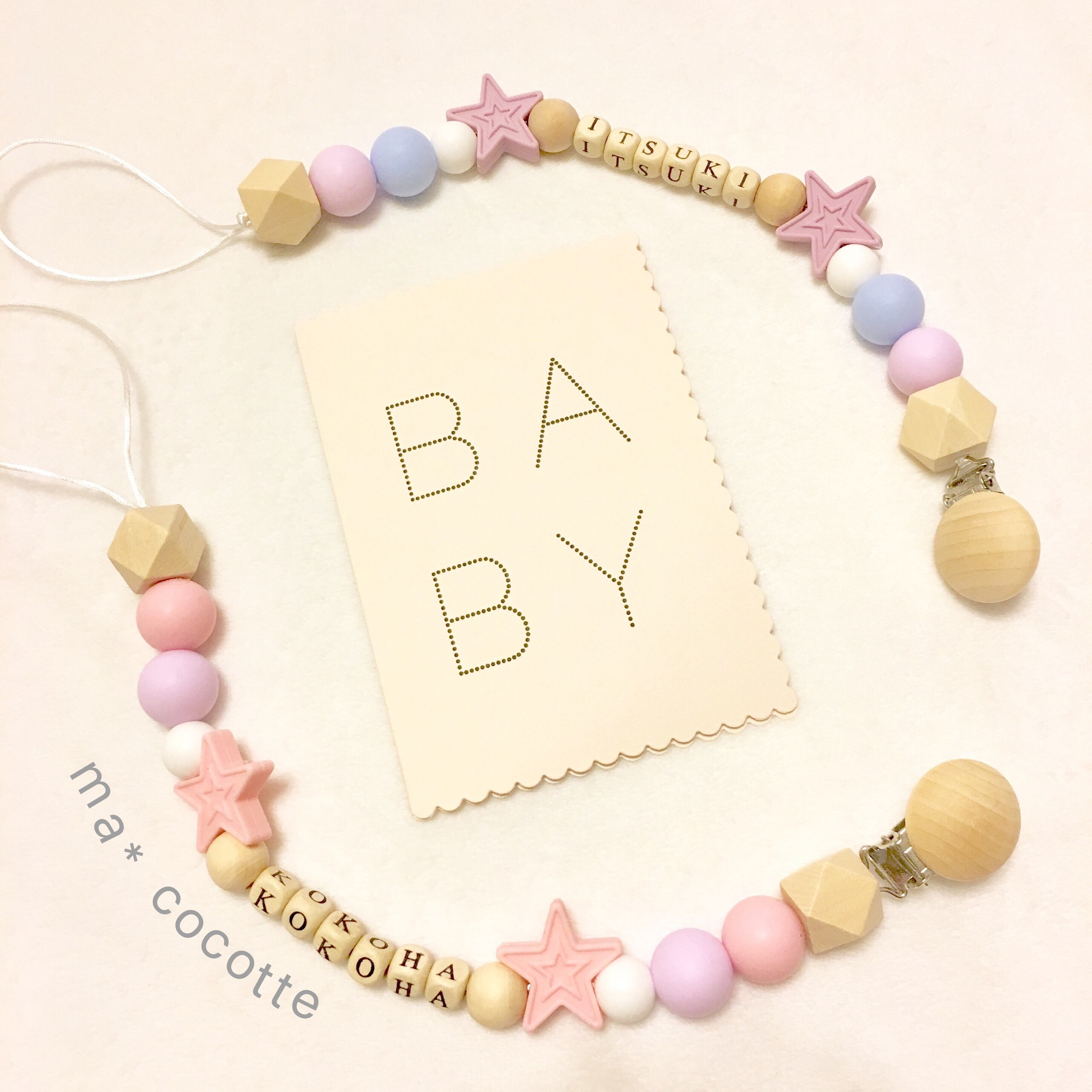 《スター名入れ(wood)ティーシングホルダー・おしゃぶりホルダー》